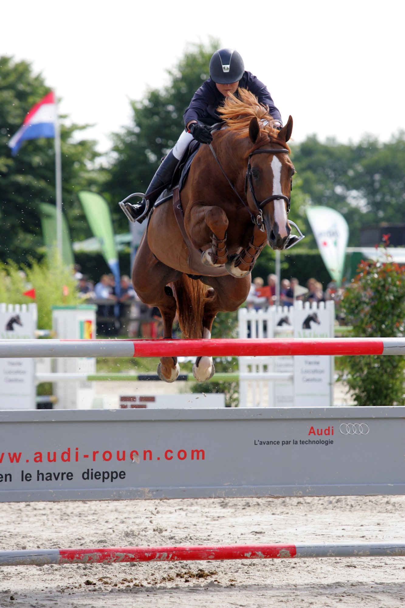 En 2013 (9 ans), sous la selle de sa nouvelle cavalière, Nina Fagerstrom, QUEBRACHO prend ses marques au plus haut niveau ! 2ème du Grand Prix CSI** de Zandhoven.