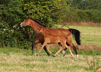 GOELETTE B, fille du pur-sang Gaur, a été mise à la reproduction après avoir été testée avec succès en CSO jeunes chevaux, ISO 112, elle a engendré :